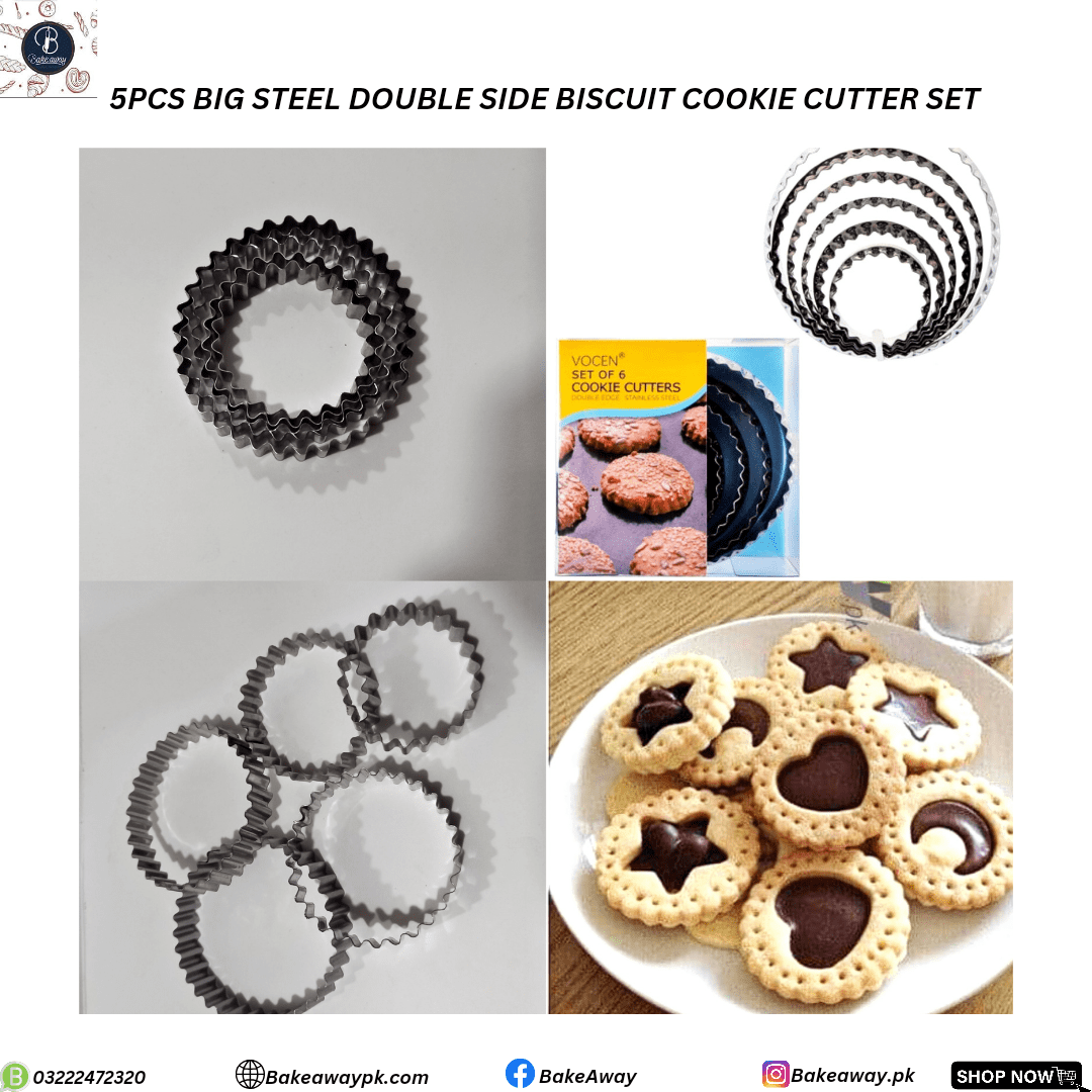 “5pcs Big Biscuits Cutter”is one of our best-selling products for baking. Enhance your baking experience with Bakeaway’S “5pcs Big Biscuits Cutter” and feel like a professional baker