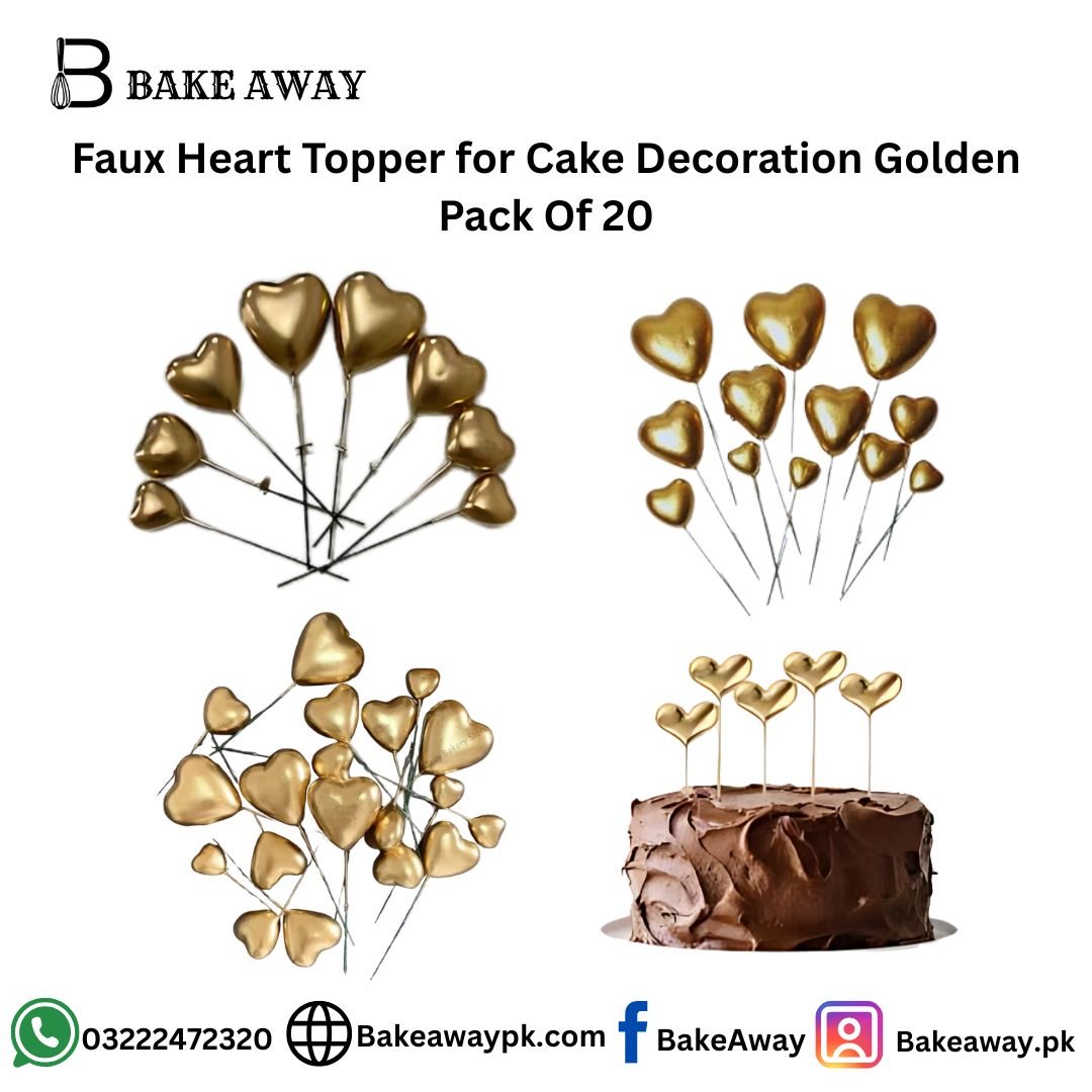 Faux Heart Topper for Cake Decoration Golden Pack of 20