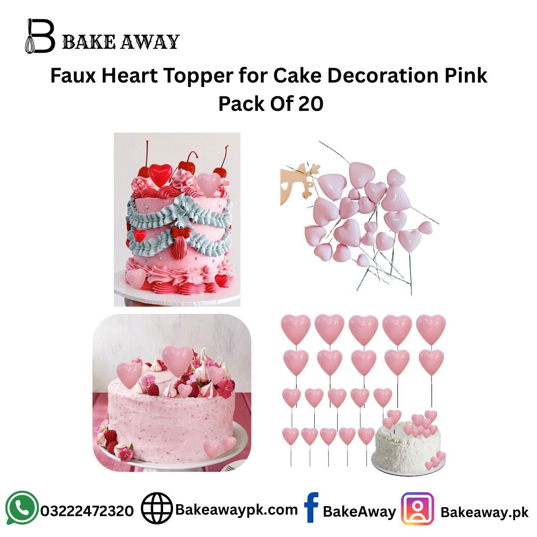 Faux Heart Topper for Cake Decoration Pink Pack of 20