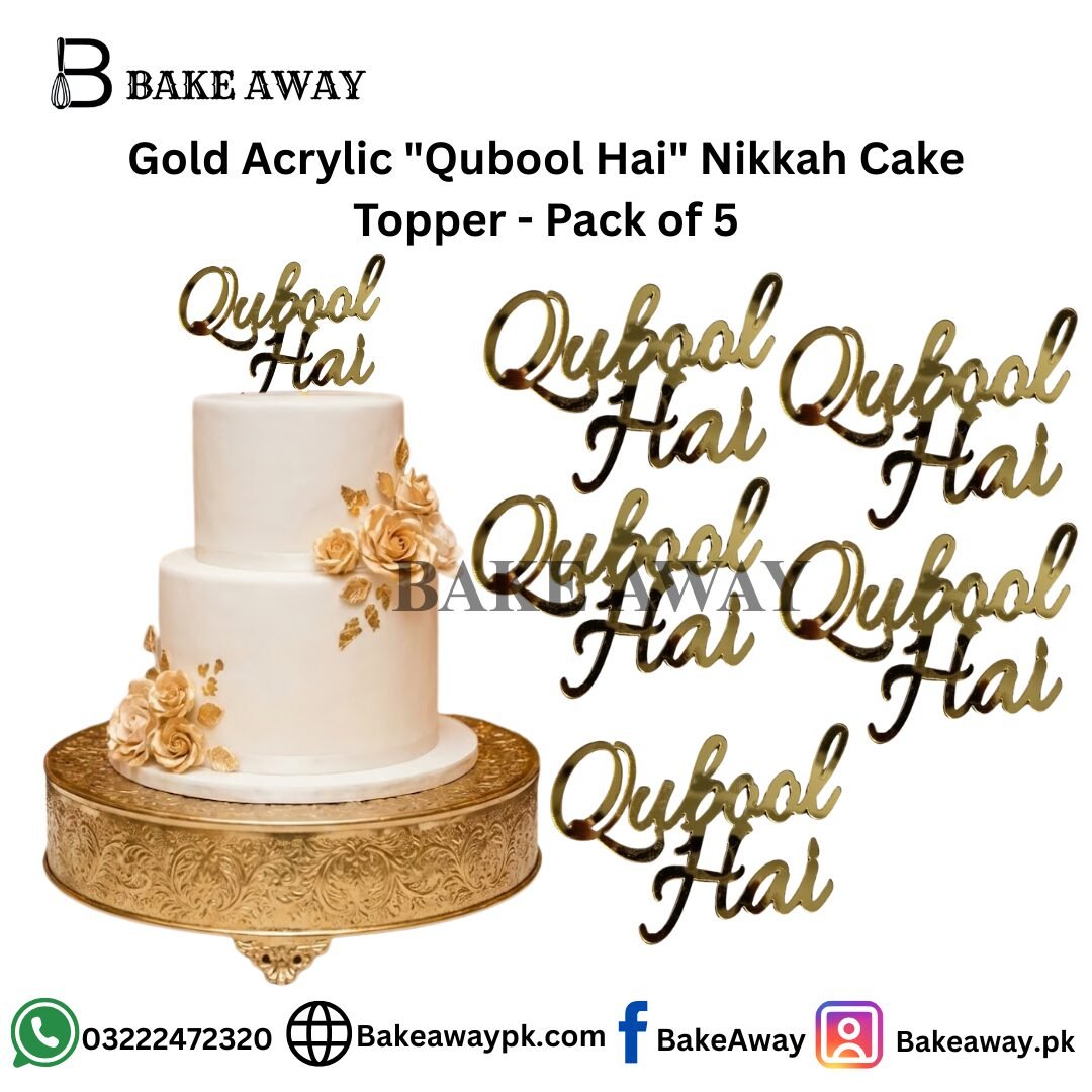 Gold Acrylic “Qubool Hai” Nikkah Cake Topper – Pack of 5