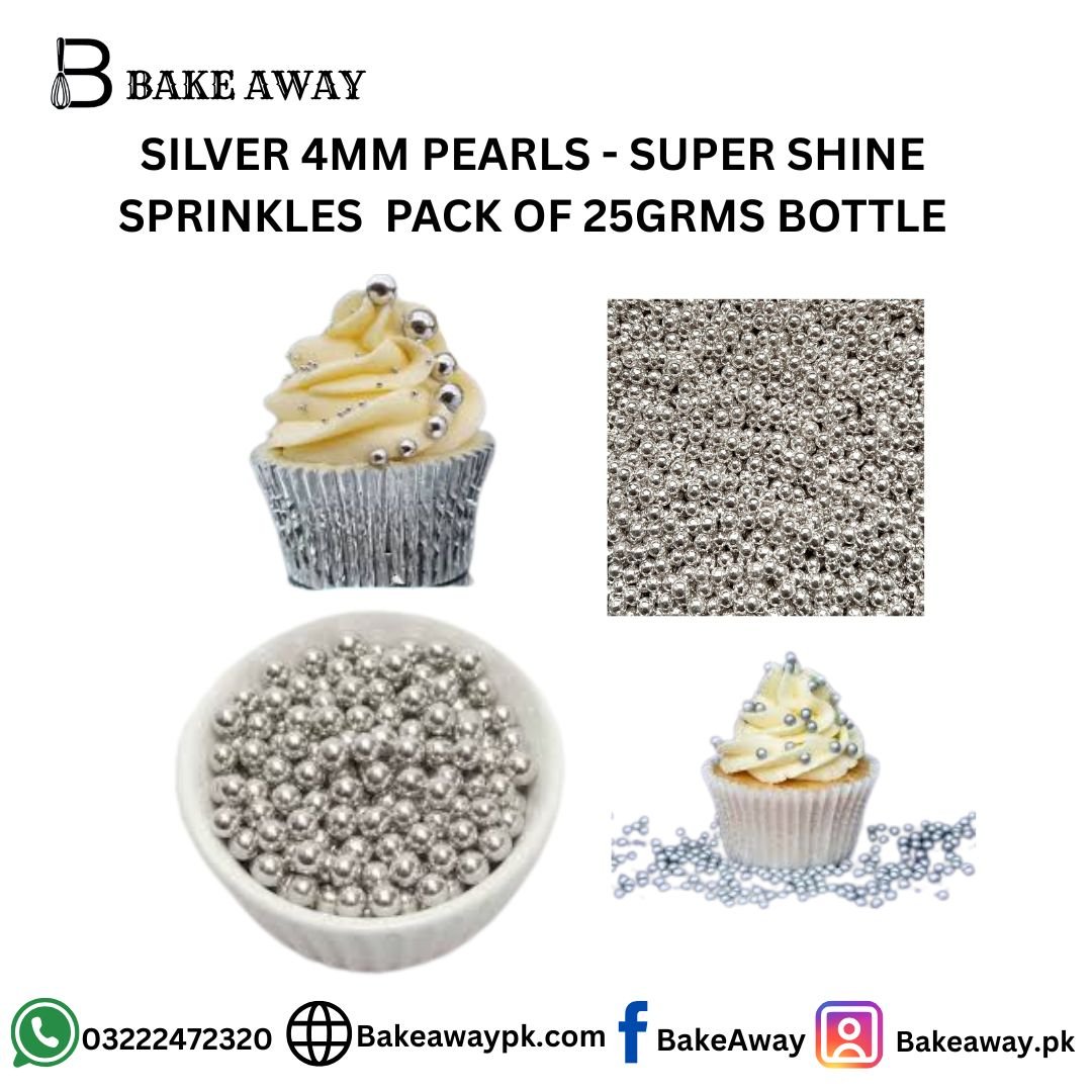 SILVER 4MM PEARLS – SUPER SHINE SPRINKLES PACK OF 25GRMS BOTTLE